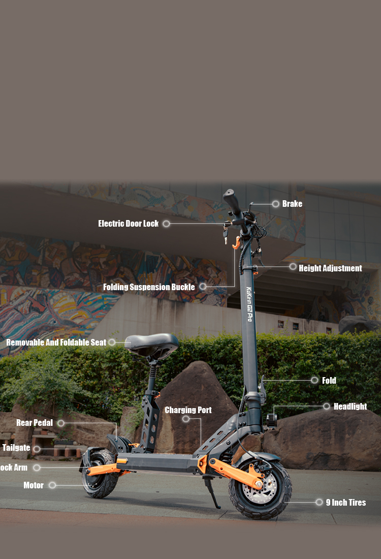 Navigate any terrain with ease thanks to the KUKIRIN G2 Pro's powerful four-arm shock absorption system. This robust shock absorption capability allows you to tackle rough and uneven surfaces, ensuring a smooth and comfortable ride. Whether you're riding on city streets or off-road trails, the scooter's advanced shock absorption makes every journey enjoyable.