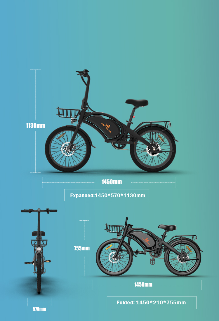 With a robust 350W motor and powered by a 48V 7.5Ah battery , this electric bike delivers exceptional speed and range. The 20-inch pneumatic wheels provide superior traction and stability, ensuring a smooth and comfortable ride on various terrains.